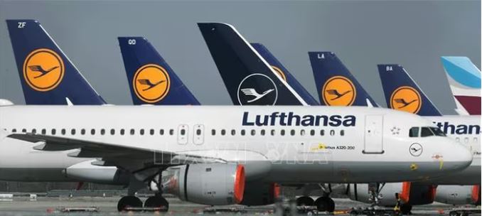 Máy bay của Hãng hàng không Lufthansa tại sân bay Frankfurt, Đức.