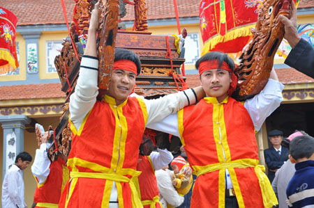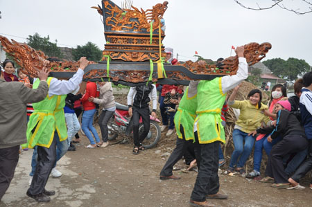 Kiệu tự “bay” trên đường rước ở Ninh Bình