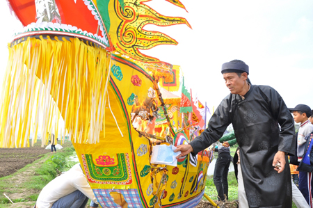 Theo cụ Mã Văn Việt – Chủ tế chính của lễ hội cho biết thì thuyền rồng được dựng ra nhằm để chứa đựng nhưng gì xấu xa, không tốt của năm cũ được mọi người và du khách thập phương bỏ vào. Thuyền sẽ được mang đi ra đồng đốt, vất bỏ đi. Từ đây mọi cái không tốt của năm cũ sẽ được rũ bỏ để nhường chỗ cho những gì tốt đẹp, may mắn, hạnh phúc… được các thần thánh mang đến cho nhân dân và du khách thập phương.