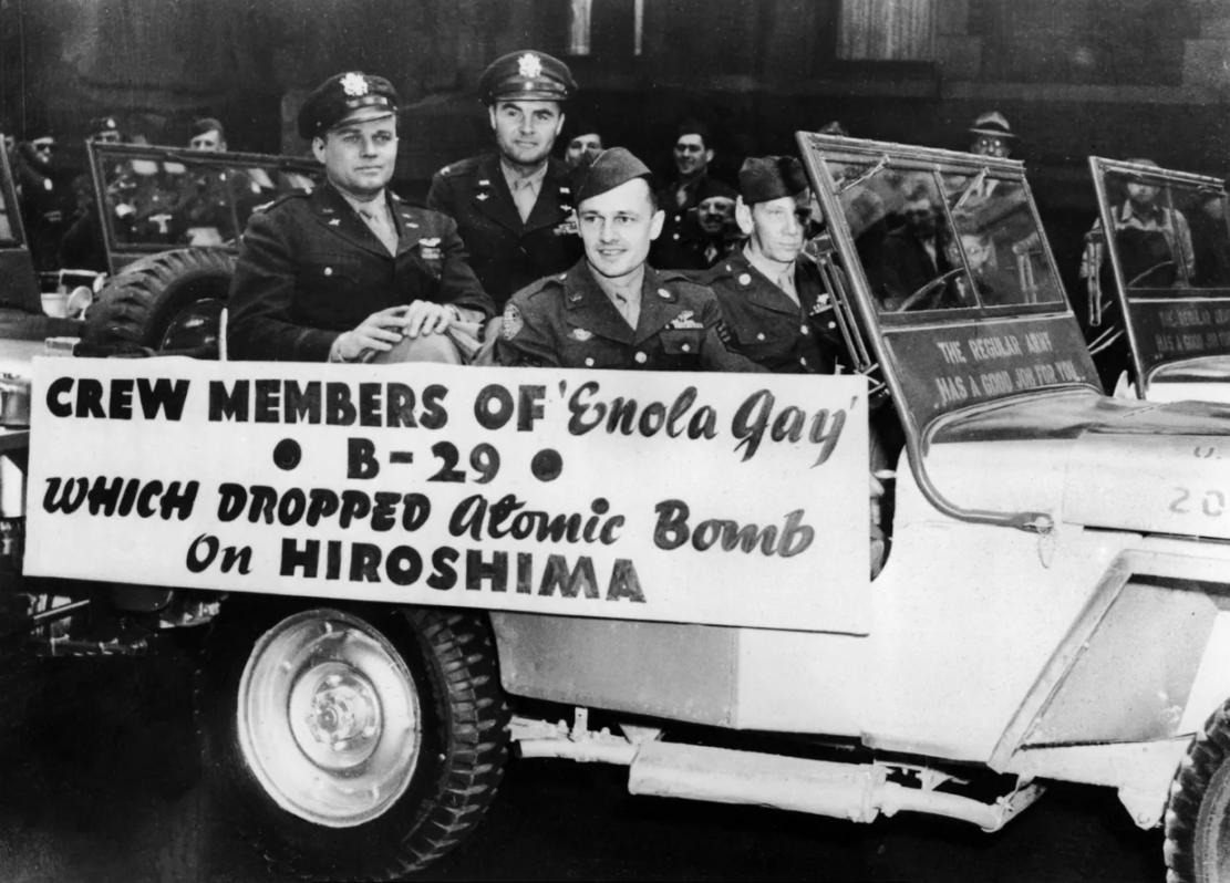 Đội bay của chiếc máy ném bom ENOLA GAY B-29 với phi công Paul Tibbets, người đã thả bom nguyên tử xuống Hiroshima