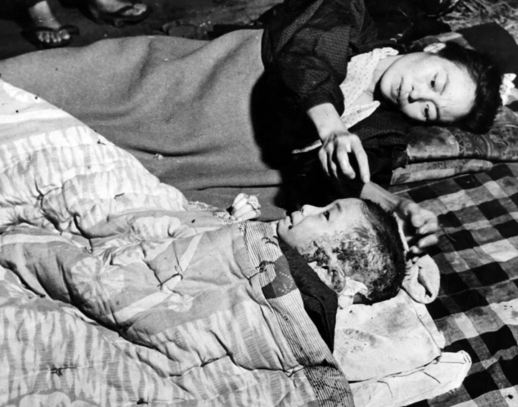 Người mẹ chăm sóc đứa con bị thương, trở thành nạn nhân trong vụ ném bom nguyên tử tại Hiroshima