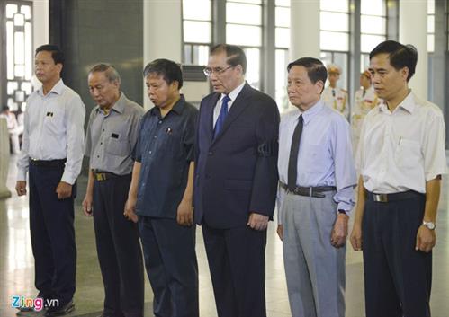 Nguyên Tổng bí thư Lê Khả Phiêu và Trưởng Ban tuyên giáo Trung ương Đinh Thế Huynh lần lượt chia buồn.