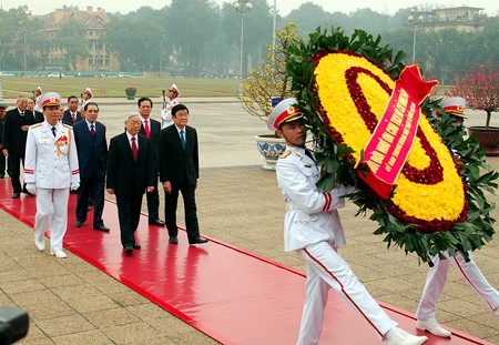 Nhân kỷ niệm 84 năm Ngày thành lập Đảng Cộng sản Việt Nam (3/2/1930-3/2/2014) và Tết Nguyên đán Giáp Ngọ, sáng 27/1, các đồng chí lãnh đạo Đảng, Nhà nước, Quốc hội, Mặt trận Tổ quốc Việt Nam đã tới đặt vòng hoa, vào Lăng viếng Chủ tịch Hồ Chí Minh và dâng hương tưởng niệm các Anh hùng liệt sỹ.