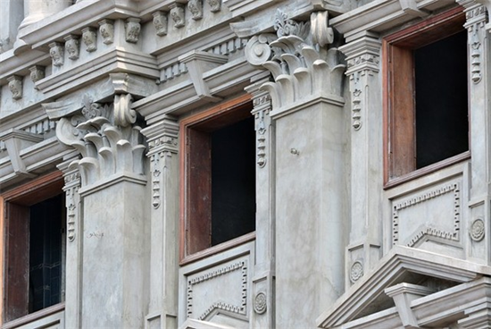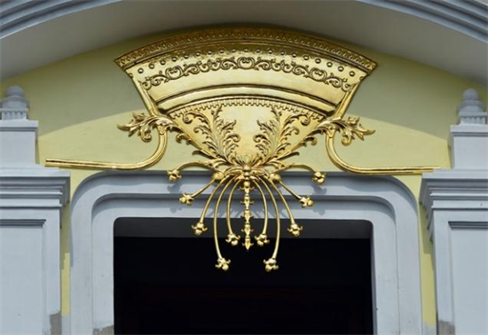 Hai cửa sổ tầng 4 được trang trí những họa tiết tinh xảo, đều được dát vàng