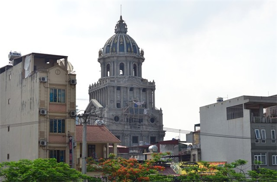 Tòa lâu đài của một đại gia buôn sắt thép trên phố Hoàng Quốc Việt (Hà Nội) khiến nhiều người phải trầm trồ. Tòa nhà có diện tích 400 m2 với 5 tầng lầu và một chóp nhọn tròn phía trên đỉnh và 6 con gà dát vàng.