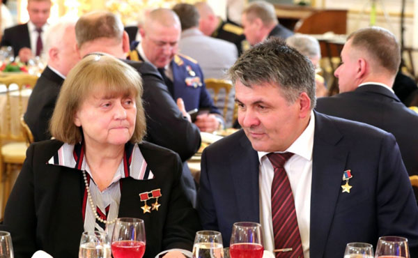 Nữ phi công vũ trụ, hai lần Anh hùng Liên Xô Svetlana Savitskaya và phi công, Anh hùng LB Nga Vladimir Pismennyi trong buổi lễ tại Điện Kremli