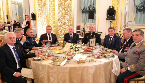Buổi tiếp khách tại Điện Kremli ngày 7/12 có sự tham dự của gần 250 Anh hùng quân đội và dân sự - đó là các Anh hùng Liên Xô, Anh hùng LB Nga, những người được tặng đủ 3 Hạng Huân chương Vẻ vang và 4 Hạng Huân chương Thánh Gheoócghi.