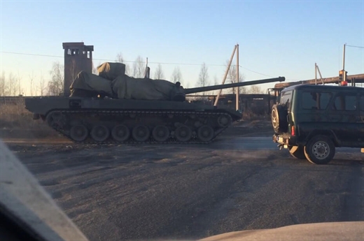 Dự án được bảo mật thông tin rất chặt chẽ, đến nay vẫn có rất ít thông tin về T-95 được công bố. Trước đây, chúng đều xuất hiện với hình hài phủ bạt nhưng vừa qua, trên các trang mạng của Nga đã xuất hiện những hình ảnh lộ diện toàn thân mới nhất của T-95. Ảnh: Tăng T-95 xuất hiện trước đây được phủ bạt