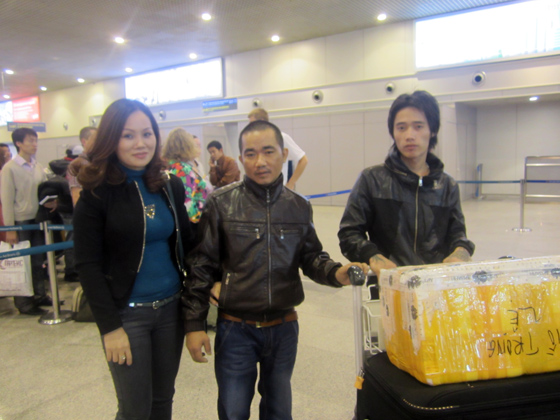 Hồ Trọng Lệ ( giữa) tại sân bay Domodedovo