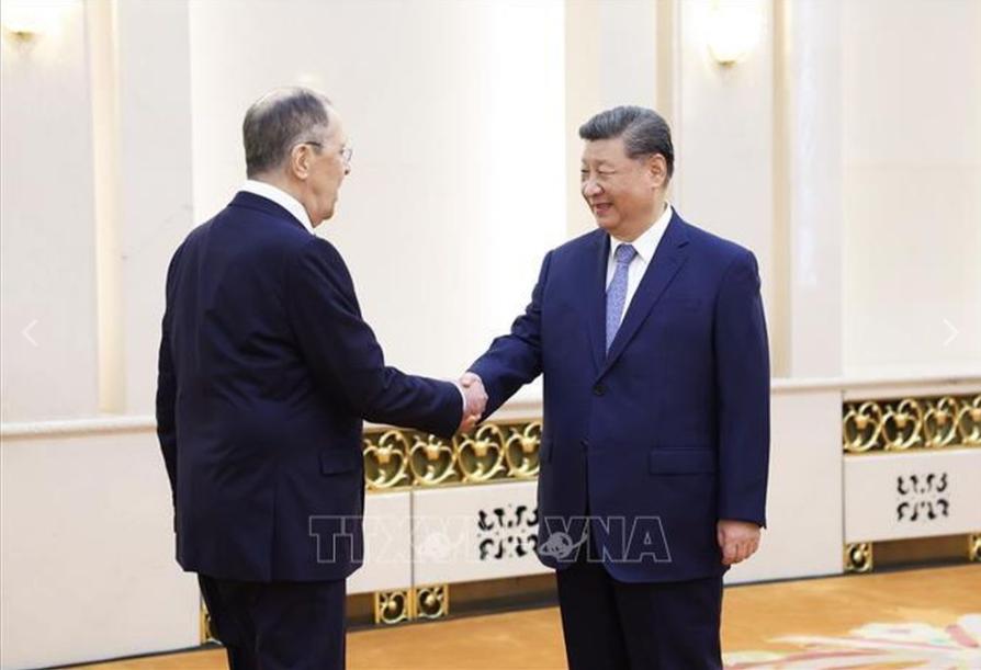 Chủ tịch Trung Quốc Tập Cận Bình (phải) và Ngoại trưởng Nga Sergey Lavrov tại cuộc gặp ở Bắc Kinh ngày 15/7. Ảnh: THX/TTXVN