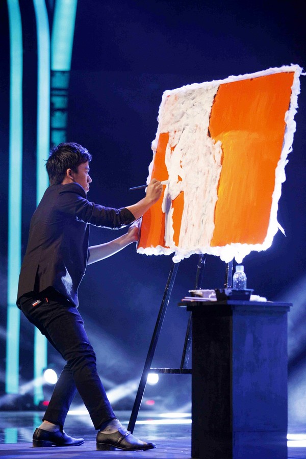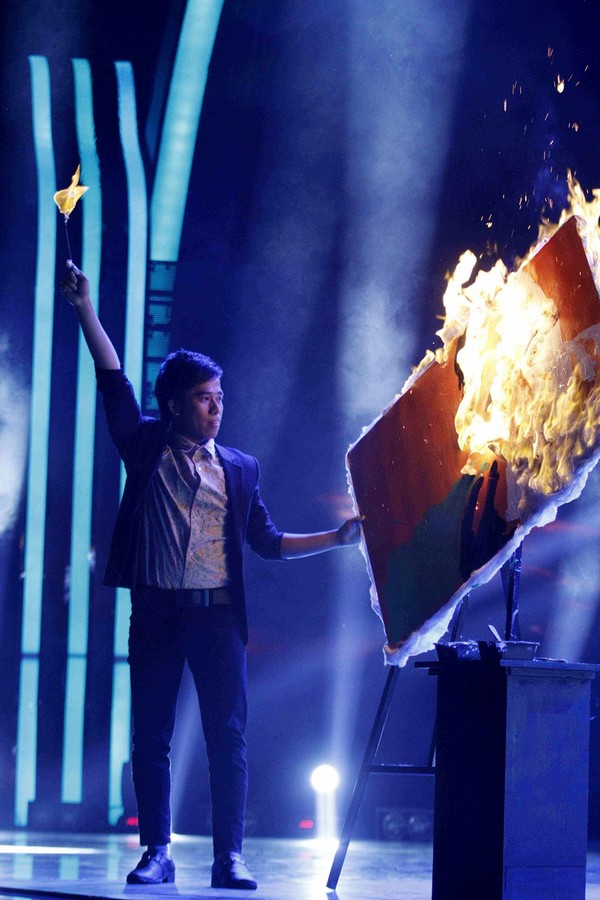 Trong phần thi của mình, thí sinh Phạm Hồng Minh đã bất ngờ thẳng tay... đốt bức tranh mình vừa vẽ.