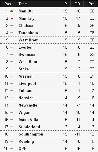 Man United: Lindegaard; Rafael (Smalling 31’), Evra, Evans, Ferdinand; Anderson (Jones 45’), Carrick, Fletcher, Young; Rooney, Van Persie (Welbeck 74’).