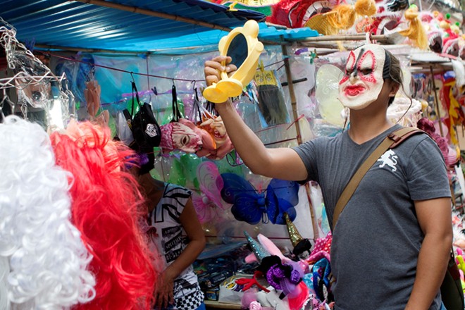 Bất chấp lệnh cấm, hàng loạt mặt nạ gây hoảng sợ cho người đi đường vẫn được công khai bày bán ở chợ trung thu phố cổ Hàng Lược, Hàng Mã.