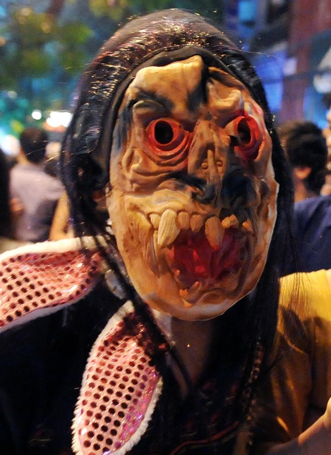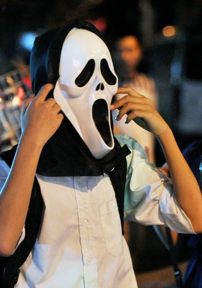 Những ngày này, người đi dạo chơi chợ trung thu phố cổ thủ đô có thể bị giật mình hoảng sợ khi bị nhiều thanh niên dùng mặt nạ kinh dị chạy ra trước mặt hù dọa.