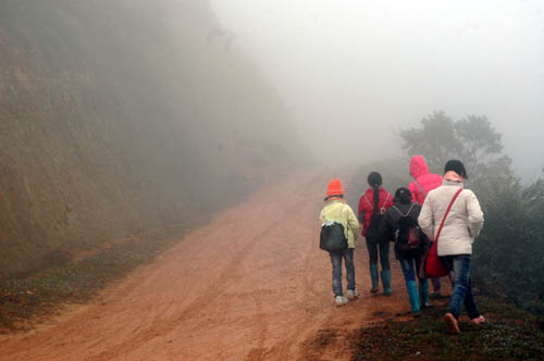Bật đèn giữa ban ngày đường lên Mẫu Sơn.