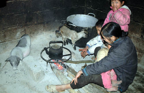 Với nền nhiệt 3 độ C, người dân và gia súc ở Mẫu Sơn đang oằn mình chịu cái rét cóng nếu như không có bếp lửa hồng.