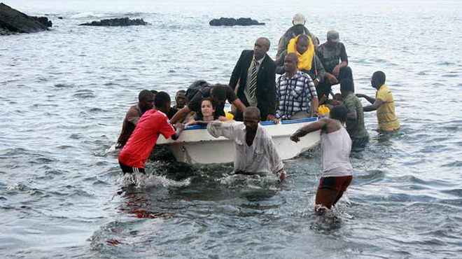 Những người thoát chết được đưa vào bờ - Ảnh: AFP