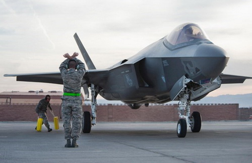 F-35A của Không lực Mỹ tại căn cứ Nellis, bang Nevada. Chuyên gia Nga cho rằng máy bay Mỹ trông tinh vi như chiếc đồng hồ Thụy Sĩ, còn máy bay Nga chắc chắn như cỗ xe tăng - Ảnh: Không lực Mỹ