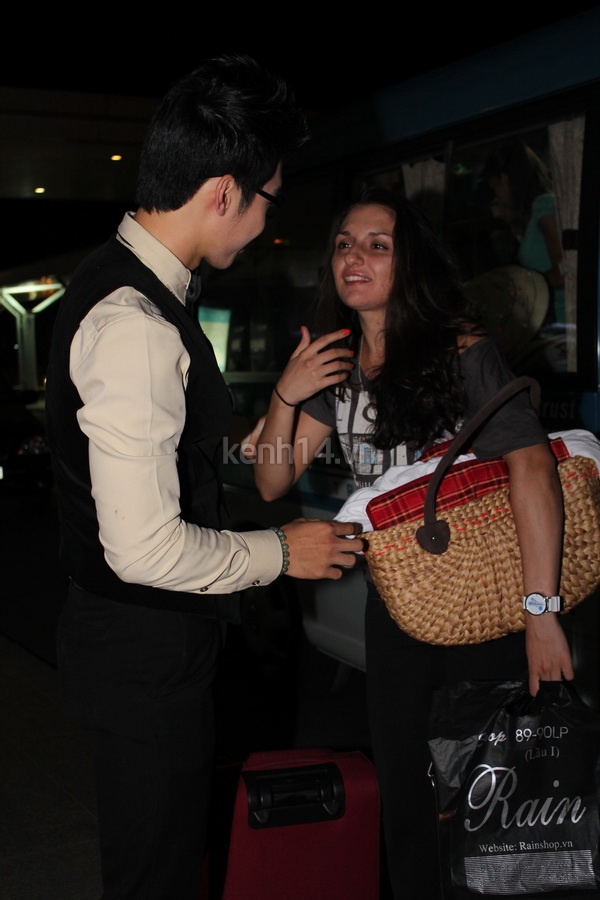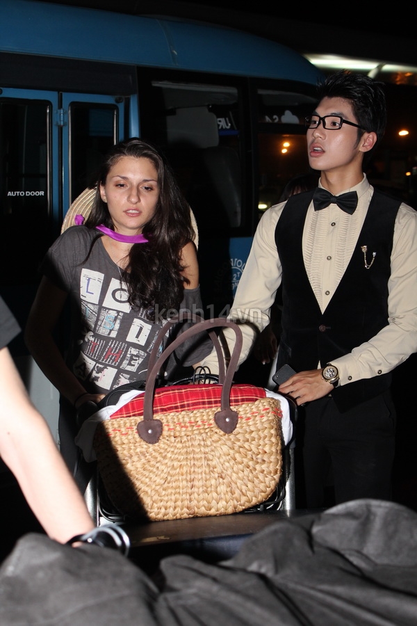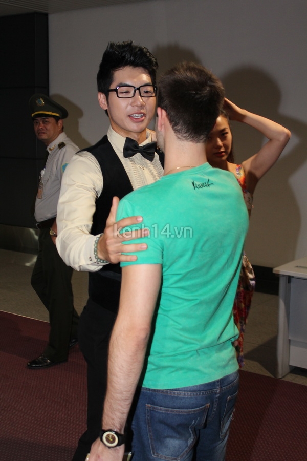Trương Nam Thành giúp đỡ bạn nhảy trong việc di chuyển hành lý