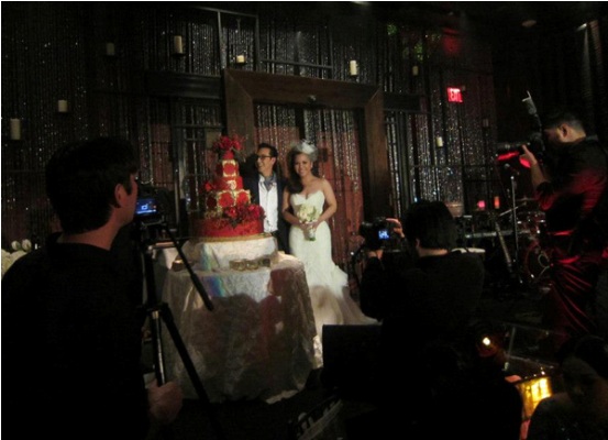 Cô dâu và chú rể vừa hát vừa khiêu vũ trước sự cổ vũ của quan khách.