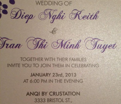 Thiệp cưới của Minh Tuyết được đăng trên một diễn đàn ở hải ngoại.