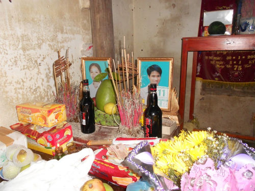 Bàn thờ hai vợ chồng nghi ngút khói hương