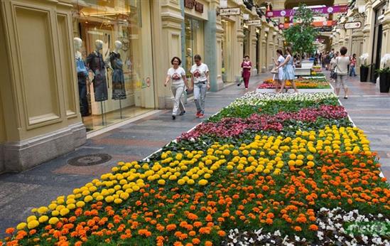 600 nghìn bông hoa dưới sự sắp xếp của các chuyên gia đã biến GUM thành một vườn hoa rực rỡ, cả bên trong lẫn bên ngoài.