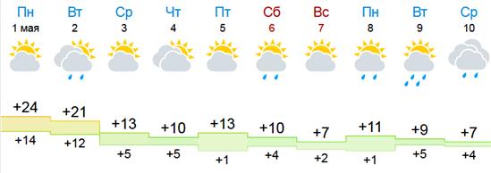 Theo thời tiết dự báo thời tiết "Phobos",  vào ngày 2 tháng 5, nhiệt độ chỉ khoảng  18... 21 độ C vào ban ngày, vào ban đêm khoảng 11 ...13 độ C. Vào tối thứ tư, nhiệt độ chỉ còn khoảng 5 ...7 độ C, ban ngày trời ấm lên đến 13...15 độ C.