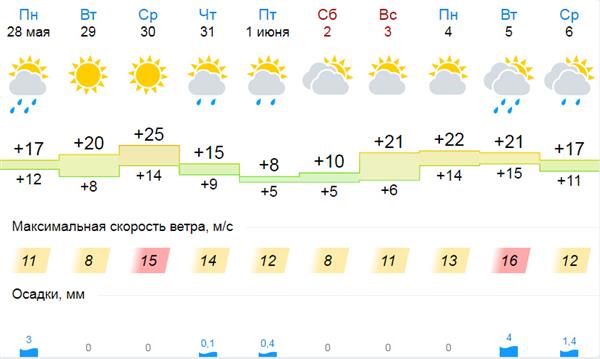 Dự báo: trong tuần này, ở Moskva ngày nóng nhất sẽ là Thứ Tư 30/5 với nhiệt độ 25... 27 độ C và ngày thứ Sáu 1/6 sẽ lạnh nhất với nhiệt độ tối đa chỉ khoảng 8 độ C.