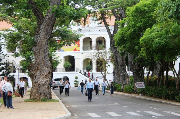 Giờ tan làm, người Việt và Người Nga đi chung trên một con đường trong khuôn viên