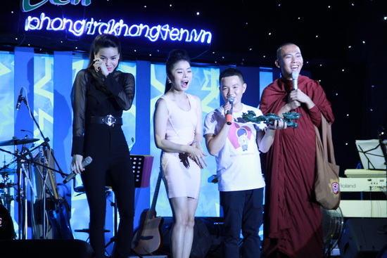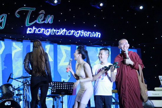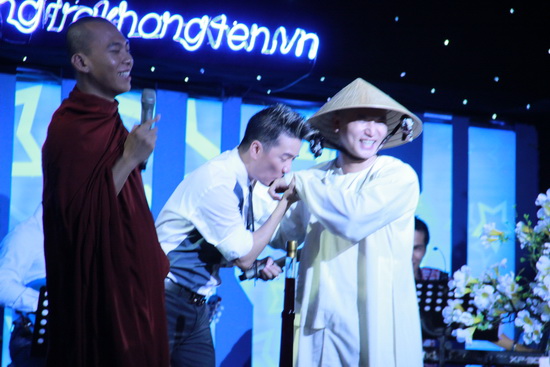 Cứ mỗi lần hai nữ ca sĩ giơ tay lên trán để che bớt ánh sáng cho dễ nhìn khán giả, vị sư thầy lại ví họ như Tôn Ngộ Không đang đi tìm sư phụ