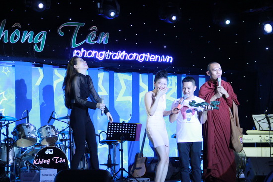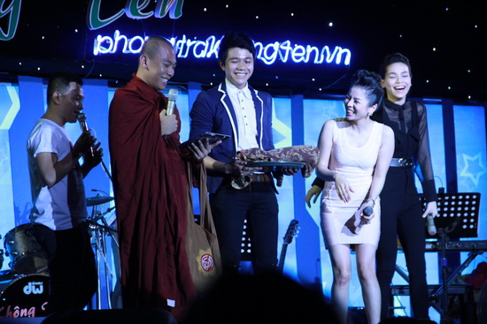 Những chuyện liên quan đến sex, chuyện phòng the, yêu đương trai gái, tâm sinh lý... được xem là đề tài "nhạy cảm" đối với những người tu hành cũng được vị sư thầy đem ra mổ xẻ. Trong nhiều phút hứng thú trên sân khấu, vị sư thầy khá mạnh miệng sử dụng những từ ngữ phóng khoáng, khiến ai nấy có mặt tại đêm nhạc "cười ngả nghiêng, thở ngao ngán".