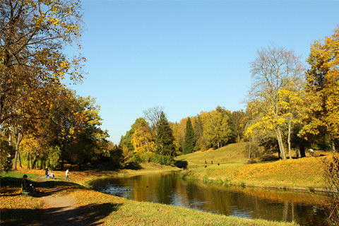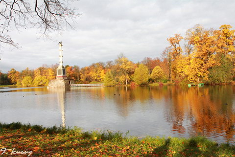 Sang thu, nước Nga dường như chỉ bao trùm một làn khí nhẹ, trong và hòa trộn đủ hương vị của đất trời. Trên mọi nẻo đường, nơi đâu cũng rợp bóng cây ngập tràn sắc vàng, xào xạc theo mỗi bước chân lướt trên thảm cỏ và rực rỡ trên mái tóc người đi. Những cung điện nguy nga, bao bọc bởi sắc vàng thu.
