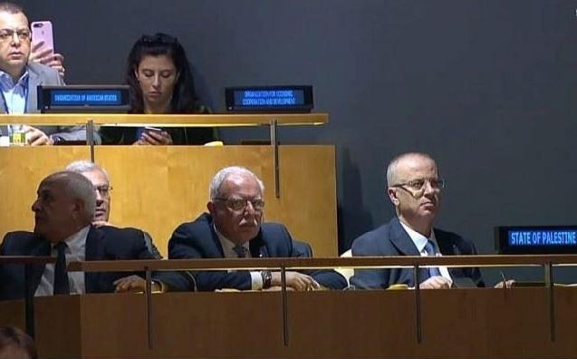 Ảnh chụp màn hình từ video của phái đoàn Palestine khi Chủ tịch Chính quyền Palestine Mahmoud Abbas phát biểu tại Đại hội đồng Liên Hợp Quốc lần thứ 73, ngày 27/9/2018.