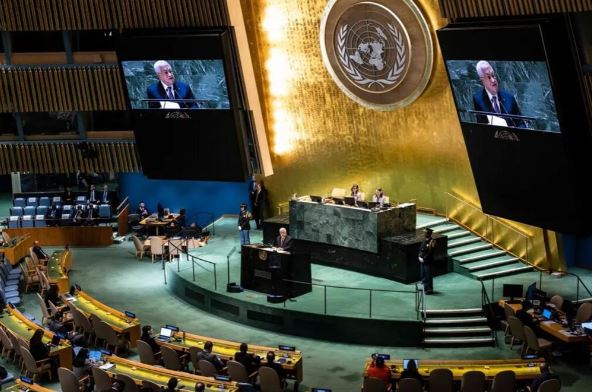 Tổng thống Chính quyền Palestine Mahmoud Abbas phát biểu tại kỳ họp thứ 79 của Đại hội đồng Liên Hợp Quốc, ngày 26/9/2024. Ảnh: AP.