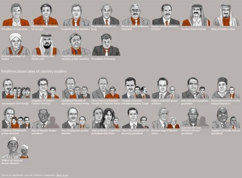Danh sách một số lãnh đạo thế giới và những người thân cận của họ được cho là có liên quan đến Hồ sơ Panama. Đồ họa AFP