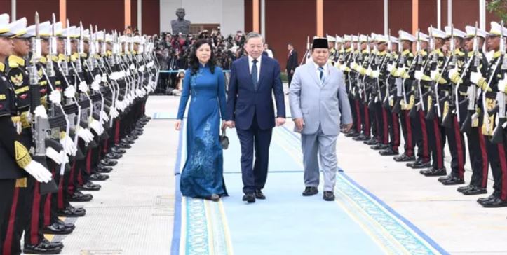 Tổng thống Prabowo Subianto tiễn Tổng Bí thư Ban Chấp hành Trung ương Đảng Cộng sản Việt Nam Tô Lâm và phu nhân Ngô Phương Ly trước khi đoàn rời đi Singapore. © Ảnh : Bureau of Press, Media, and Information (BPMI) of the Presidential Secretariat