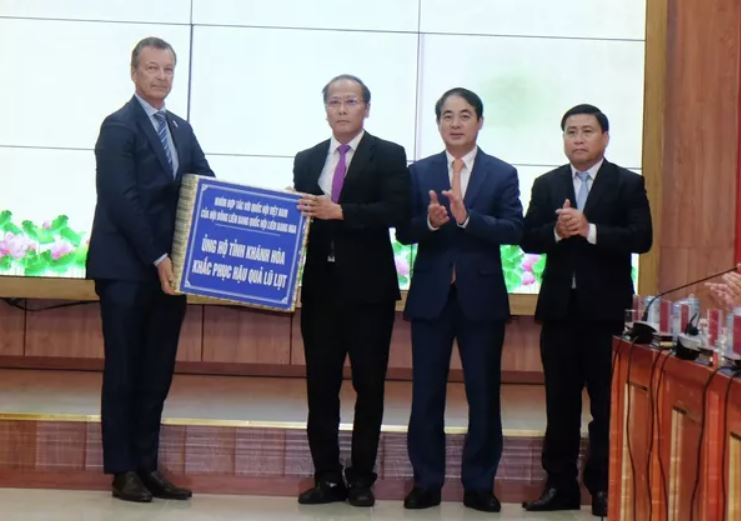 Liên bang Nga trao nhiều phần quà hỗ trợ nhân dân Khánh Hòa. © Ảnh : TTXVN -