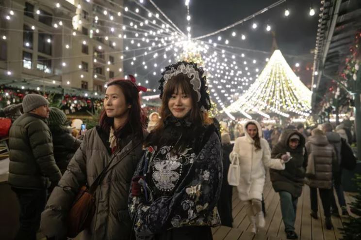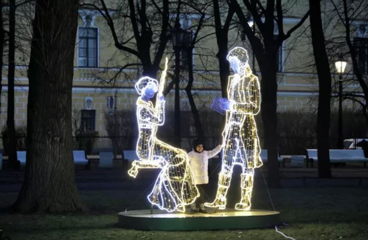 Để đón chào Năm Mới, các thành phố của Nga trang hoàng đường phố bằng đèn rực rỡ, cây thông xanh và vô vàn tác phẩm nghệ thuật lễ hội.