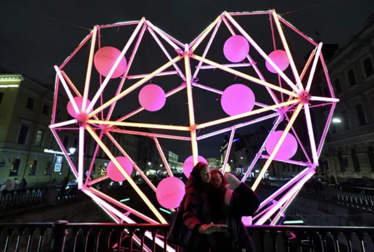 Đèn trang trí mừng Năm Mới ở Saint-Peterburg. © Sputnik / Artem Pryahin