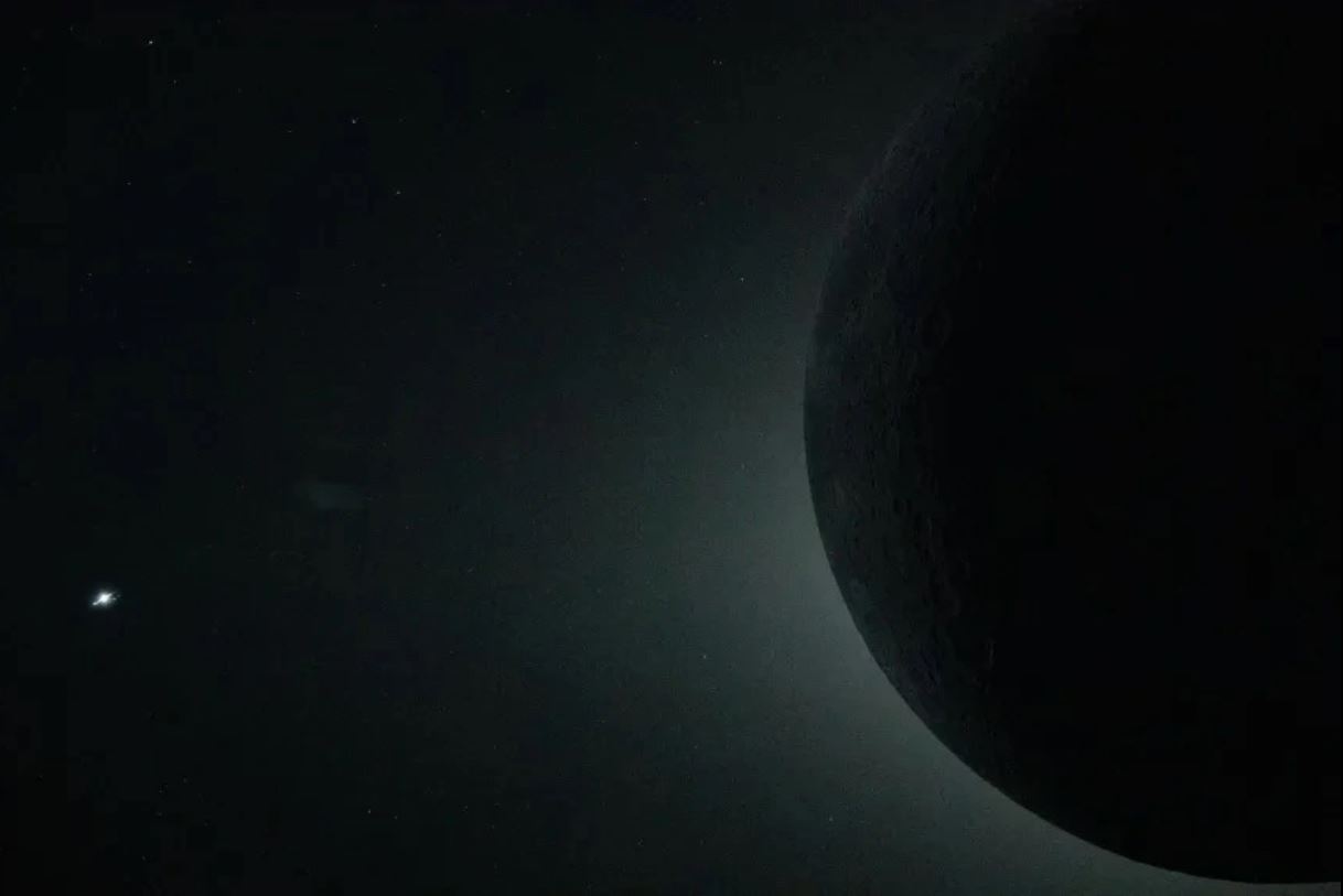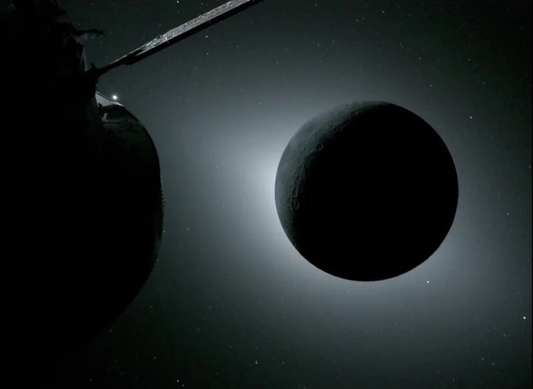 Tàu Orion có thể được nhìn thấy ở phía bên trái của Mặt Trăng, được chiếu sáng ngược