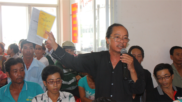 Giơ tay phát biểu đầu tiên, ông Trần Văn Hội - sống tại xã Vĩnh Điều, huyện Giang Thành (Kiên Giang) - nêu hàng loạt nghịch lý trong việc quản lý đất đai của địa phương khiến người dân phải nhiều năm mang đơn đi khiếu nại.