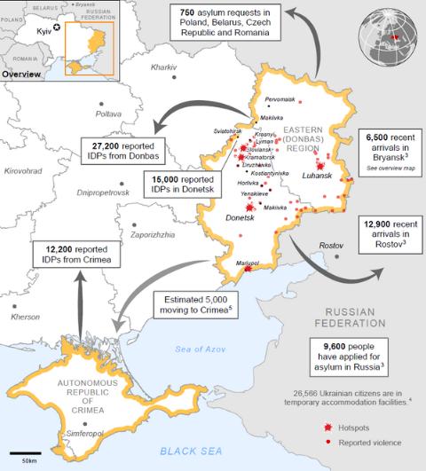 Cuộc khủng hoảng tại miền Đông Ukraine đã dẫn tới một thách thức không kém phần nghiêm trọng khác đó là nền kinh tế Ukraine đang đứng bên bờ vực sụp đổ khiến nước này phải dựa vào nhiều nguồn trợ cấp của nước ngoài. Người dân miền Đông cũng lâm vào cảnh khốn cùng do không có việc làm, lương hưu hay những nhu yếu phẩm khác.
