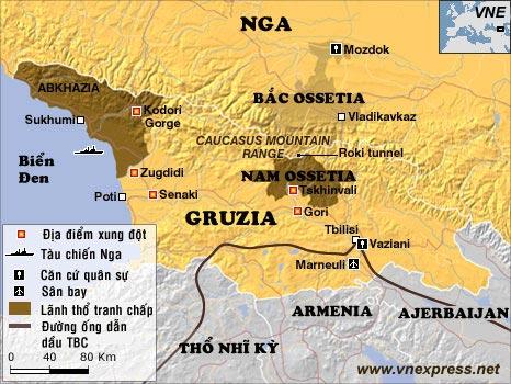 Nam Ossetia và Abkhazia như 2 mũi dao thọc vào sườn Gruzia