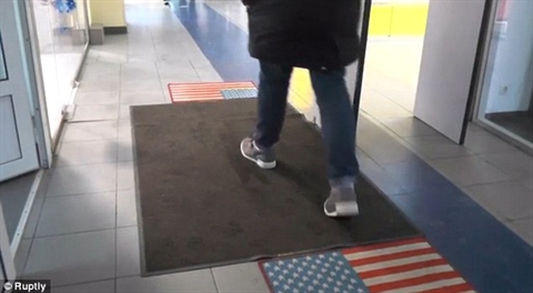 Trang web Daily Mail đăng ảnh chụp tại một trong các cửa hàng Moscow. Ở ngay cửa ra vào có tấm thảm lau chân in quốc kỳ Mỹ. Khách hàng khi bước vào phòng có thể lau giầy vào tấm thảm này.
