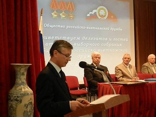 Đặc biệt, các đại biểu còn được chào đón các vị khách quý Việt Nam. Đó là ông Đào Trọng Thi-Uỷ viên Trung ương Đảng, Chủ nhiệm Ủy ban Văn hoá, Giáo dục, Thanh thiếu niên và Nhi đồng của Quốc hội, Chủ tịch Hội hữu nghị Việt Nam-LB Nga; Ông Vũ Xuân Hồng-lãnh đạo Liên hiệp các tổ chức hữu nghị Việt Nam; Đại sứ đặc mệnh toàn quyền nước ta tại LB Nga Phạm Xuân Sơn; đại diện một số phòng ban của Đại sứ quán, của một số hội đoàn người Việt  Nam cùng đoàn đại biểu Hội hữu nghị Việt-Nga. Chủ tịch nước ta Trương Tấn Sang đã có thư chúc mừng và bức thư được ông Vũ Xuân Hồng đọc trang trọng trước Đại hội.