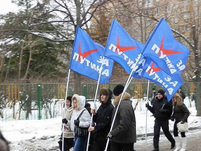 Chúng tôi thấy rất phấn khởi khi tham gia cuộc tuần hành và mít tinh ủng hộ thủ tướng Pu-tin bởi vì ông là ứng cử viên xứng đáng nhất.