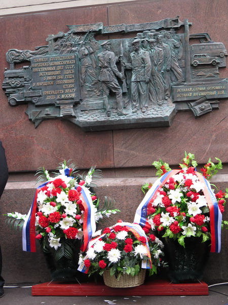 Tấm biển đồng khổ lớn được gắn lên tòa nhà số 21 trên phố “Cầu Ku-zơ-nhet” ở ngay trung tâm thủ đô Moskva, ghi lại hình ảnh các dân binh, các nhà ngoại giao và các nhân viên của Bộ Dân ủy Ngoại giao, những người đã xả thân mình trong các trận quyết chiến bảo vệ Moskva trước bước tiến của quân phát xít Đức. Cùng với dòng chữ ghi ý nghĩa của tấm biển lưu niệm bằng đồng, bên cạnh hình ảnh các nhân viên, cán bộ ngoại giao được khắc nổi trong động tác tiếp nhận vũ khí chiến đấu... có dòng chữ khắc họa ý chí quyết thắng của các nhân viên Ngoại giao “Hãy đứng lên, đất nước vĩ đại, hãy đứng lên trong trận chiến quyết tử”. Tấm biển ghi nhớ rằng vào ngày mùng 5/7/2941, 163 sinh viên tốt nghiệp trường ngoại giao cao cấp Liên Xô đã viết đơn tình nguyện và ra mặt trận. 72 người trong số đó đã vĩnh viễn nằm lại mảnh đất Smolensk. Những người còn sống tiếp tục chiến đấu và tháng 1/1942 đã nhập vào Sư đoàn 160 tham gia bảo vệ Mosvka trong các trận đánh ở hướng Naro-Fominsk.