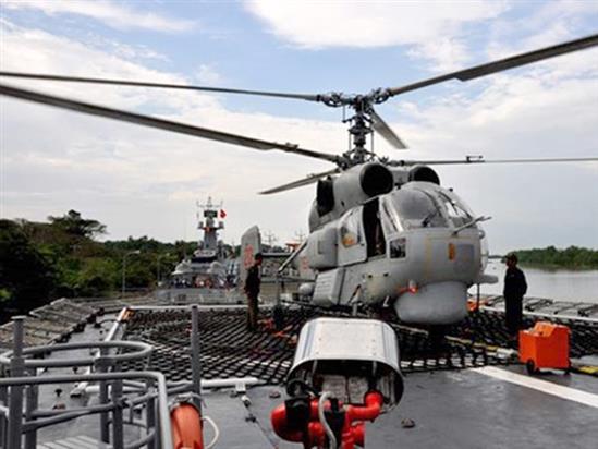 Trực thăng săn ngầm Ka-28 chuẩn bị cất cánh khỏi tàu hộ vệ tên lửa 012 Lý Thái Tổ - Ảnh: Mai Thanh Hải