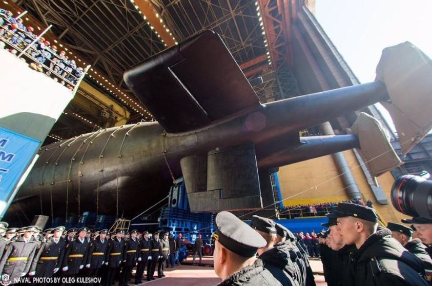 Tàu ngầm Belgorod tại Lễ hạ thủy. Ảnh Naval News